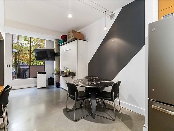 A rare downtown gem, this ground-floor Mermaid Wharf condo redefines urban waterfront living! The only unit with a private hot tub, this stylish retreat offers an open-concept design with polished concrete floors, quartz counters, slate appliances, and a gas fireplace. Thoughtful upgrades include motorized blackout blinds, a Murphy bed frame, and a new LG wash tower. Step outside to your private patio with direct access to the waterfront walkway or head up to the rooftop deck with BBQs and panoramic harbour views. Secure underground parking and storage add ease, while vibrant shops, cafes, and restaurants are just steps away. This one won’t last!