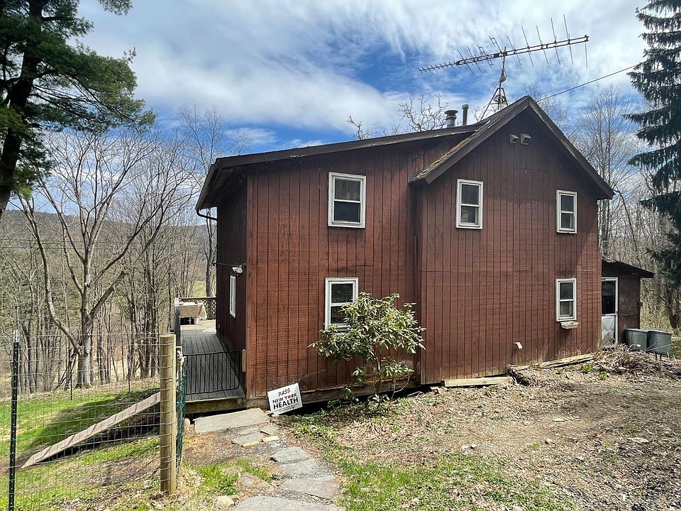 Nestled in a charming setting in the east hills of Ithaca, with brilliant distant views and a little over 2 acres, is this charming, rustic home ready for, TLC, some fixes, and loving restoration. Good news - it's been Pre-inspected and the radon test done! The living space is created by an original interior and boasts a flow-through living/dining area. Find a restful hideaway in the cozy loft with captivating hillside views. Enjoy the expansive acreage that comes complete with fencing, fire pit, wood-fired hot tub, and deck over looking the beautiful hillside . A desirable location, close to Cornell, but with all the privacy you could want. Some work needed and you can live the bohemian lifestyle you've dreamed of!