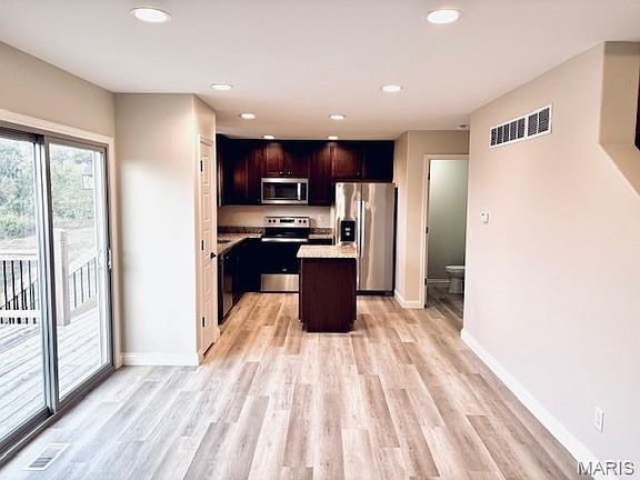 Step inside to discover a bright and airy vaulted living room ceiling that creates an open, welcoming atmosphere. The kitchen featuring stainless steel appliances, elegant 45-inch cabinets, and a layout that opens to the dining area — perfect for entertaining or family dinners. Just off the kitchen, enjoy the outdoors on your 12x12 deck, ideal for relaxing or grilling with a view of the serene backyard.