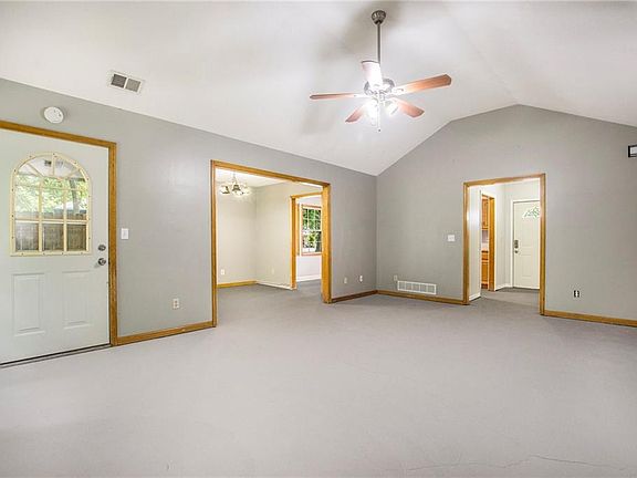 Welcome to Lathrop, Missouri! Nestled on almost an acre of tree-filled land, this charming 3-bedroom, 2-bathroom home on a slab offers a serene retreat with plenty of space to spread out. With a fenced yard and a covered front porch, you'll have the perfect setting for outdoor enjoyment and relaxation. The living area provides ample room for gatherings. The kitchen has a refrigerator, microwave, and range with great cabinet space. Adjacent to the kitchen, you'll find a dining area, ideal for enjoying meals or entertaining. The home features three comfortable bedrooms. One master bathroom and one main hall bathroom. One of the standout features of this property is the impressive 30x30 outbuilding, complete with extra-tall doors. This versatile space provides endless possibilities for use, whether you're looking for a workshop, storage area, or a place to pursue your hobbies. Conveniently located, this property offers easy highway access, making commuting a breeze. You'll enjoy the peace and tranquility of a rural setting while still being within reach of nearby amenities, schools, and shopping centers.