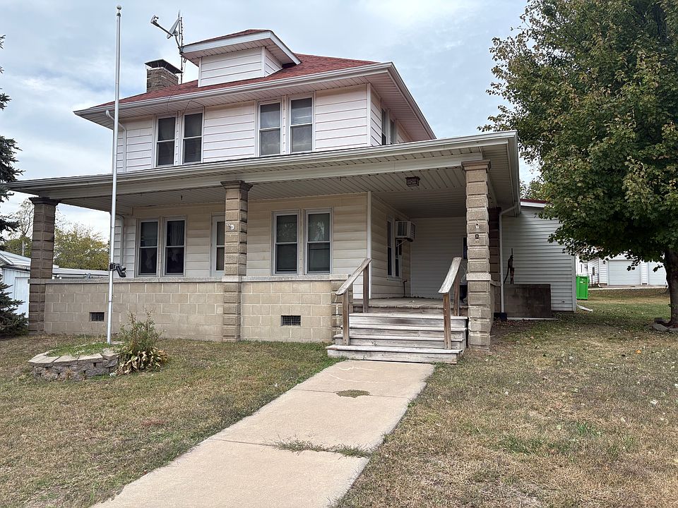 Nice sized roomsLarge double lotTwo detached garagesCovered porchesRustic charm
