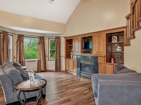 Charming home nestled on a private cul-de-sac with no neighbors behind. Vaulted ceilings, fireplace flanked by built-ins, main floor master, formal dining, a dramatic staircase leading upstairs, fully finished view out basement, two-tiered wood deck, and fenced backyard. The living area has an abundance of light with large windows spanning the space. The spacious, eat-in kitchen has granite countertops, stainless steel appliances, eating bar, under cabinet lighting, tile flooring and a pantry. Retreat to the master suite complete on the main floor with a vaulted ceiling, walk-in closet, dual sinks, separate shower and a corner soaker tub. Upstairs are two bedrooms with large closets, full bath plus a loft area overlooking the living area below. The view out basement provides a nice gathering space with a family room, wet bar, one bedroom, full bath, bonus room and storage. The home provides abundant space for a growing family!