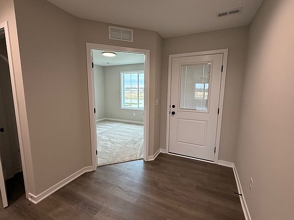 Looking to downsize? Just starting out? This is it! 2 bed, 1 bath tri-plex features zero-step entry and 36" doorways throughout as well as ADA shower with tile surround and ADA toilet for safe, easy and convenient access. The open floor plan includes vaulted ceilings in living, kitchen and dinning rooms and tray ceiling in the master. It's completed with LVP flooring in the main rooms and carpet in bedrooms and a stainless steel kitchen appliance package.