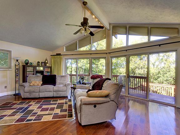 Uniquely styled home features wall of glass in living room with great Ozark view of Roark Valley. Main level updated 2009. Oak flooring. Custom cherry kit cabinets, stainless steel appliances, 5 burner dual fuel gas range, sunroom, new guest bath, ensuite bedroom with its own laundry, walkin closet and large bath featuring custom built shower with dual shower heads and body jets. Jetted tub. This bathroom will spoil you! FP woodburning or gas. 500+ sq ft party deck. New roof 2005, A/C 2007, Heat 2009. New flooring lower level 2013. Home Owner's Warranty Incl. Optimal heart of Branson location (Agent Owned) Owner/Seller is a licensed agent.