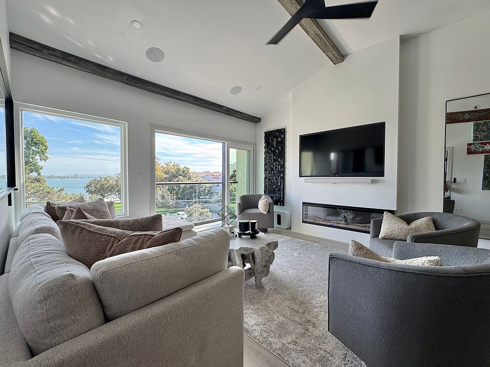 Right on the beach and Fanuel park and has a new POOL! The most sought after location in pacific beach! High vaulted ceilings, modern artwork, surround sound, ac, walk in closets in each room and desks and smart TVs, mood lighting throughout, new everything! Everything you need! If you'd like to bring your own bedroom furniture that is fine too! Please in your response tell a little about yourself! Age, occupation, reason for move, etc :)