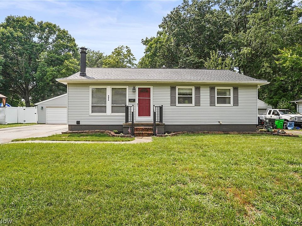 This charming 3 bedroom 1 and 1/2 bath Ranch maintained in excellent condition has several extra features that make it a true GEM! The exterior is crisp and clean, there's a newer roof and gutters and a wide concrete driveway leading to the 2 1/2 car garage with and extra side patio. The sparkling clean interior has hardwood floors throughout and a woodburner fireplace in the living room that adds warmth in the cold months. The open kitchen/dining area has newer kitchen appliances and a slider to the 24 x 20 three season room with cathedral ceiling and skylights. The neatly manicured backyard includes a firepit, a white vinyl fence and a 10 x 12 shed. The lower level has a full length rec room plus a separate office or workout room with closet and a 1/2 bath. Updates include:roof, gutters, electric panel box, furnace, AC, windows and doors, lateral sewer lines and sump pump. Home warranty included for extra peace of mind.