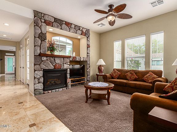 Beautiful Ashton Woods home in Verrado. 2 bed / 2 bath with living room and bonus room/Den. Indoor Gas fireplace for cozy winter evenings. Large open remodeled kitchen with large center island. New French doors off eat-in kitchen for true Arizona style living. Tile in all heavy traffic areas. Additional French doors to access side patio. Large private wrap around paver patio for entertaining. Detached 2 car Garage access from alley. Very close proximity to Restaurants, Activity center, community pool, shopping and golf. Some home furnishings included with the sale.