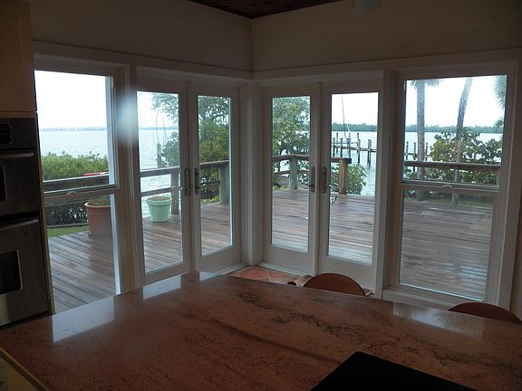 Riverfront home on Hutchinson Island. Wide open river views of the intracoastal waterway / Indian River. Custom designed home with lots of attention paid to the quality of construction by the owner/builder. Built to withstand the elements. Concrete block construction downstairs. 4 full bedrooms plus 4 full bathrooms. Wood beamed ceiling. 2 separate fireplaces. Granite kitchen counter. Existing dock with 12,000 lb lift. Seawall plus white sandy beach. Full house hurricane protection. Spectacular sunsets. 2nd story balconies overlook the river. Magnificent views from almost every room in the home. Private gated community offering marina & tennis.