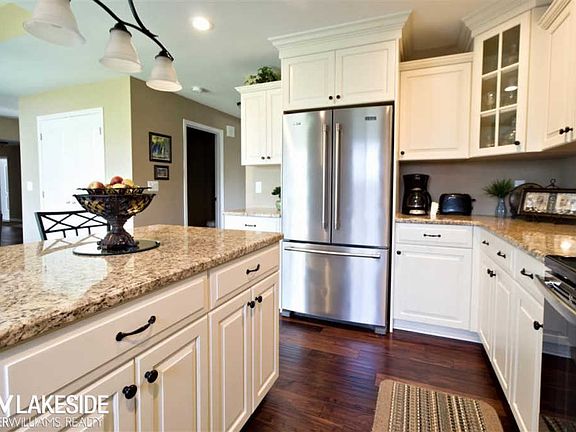 4 acres, Natural Gas and almost brand new! Barely lived in, open concept ranch. Beautiful premium finishes throughout. Staggered kitchen cabinets with crown molding, granite & kitchen island. Hard wood floors. Huge great room offers a gas fireplace, architectural ceilings, LED recessed lighting and ceiling fan. Wide open daylight basement prepped for bath. Water softener and reverse osmosis system are owned. Humidifier. Bathrooms have beautiful tile work & linen closets for additional storage. Spacious first floor laundry with sink cabinet, water box & closet. Bright natural light throughout the home. Appliances are negotiable.