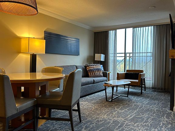 The Westin Resort & Spa Whistler - An exceptional opportunity! Suite #854 is a private 2-bedroom, 2-bathroom corner condo offering 741 sf of refined mountain resort living. Bright and beautifully appointed, this Phase 2 suite features two balconies with sunny S/SW views over the Whistler Golf Driving Range, capturing afternoon light and mountain sunsets. Enjoy Westin's 25th anniversary amenities = pool, spa, dining facilities & shops! Plus an open kitchen, dining and living area, cozy fireplace, and private bedrooms with spa-inspired ensuites. Steps to both gondolas and the vibrant pedestrian Village!
