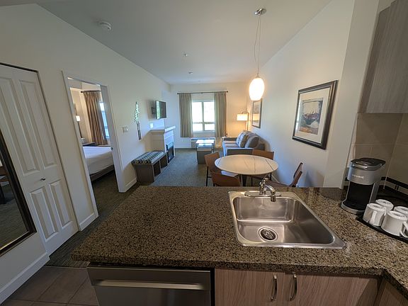 One bedroom strata hotel strata unit in Executive Suites Hotel & Resort. Allows personal use for up to 70 days per year ( 35 in winter, 35 in summer ) for you to enjoy all that Squamish and the Sea to Sky has to offer. This is an east-facing, pet friendly unit with panoramic mountain and park views. The serene location backing onto greenspace property boasts a resort experience with an outdoor pool, hot tub, fitness centre, and Free Bird Table & Oyster Bar. Make this your turn-key recreational home while collecting monthly revenue throughout the year.