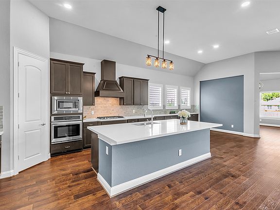 Welcome to 40902 Welbey Court! This desirable one-story floor plan offers plenty of updates including a beautiful covered back porch, whole home water softener, plantation shutters, gutters, and extended driveway for more parking. The well-appointed kitchen offers stainless steel appliances, a separate breakfast eating area, and a large quartz countertop island that opens to the living room w/ views of the backyard. A room off the kitchen can be used as a formal dining area or flex room (study or game room). The primary bedroom was extended 3 ft creating a lovely sitting area. The gorgeous ensuite bathroom includes a separate soaking tub, large shower w/ two rain shower heads and dual vanities.