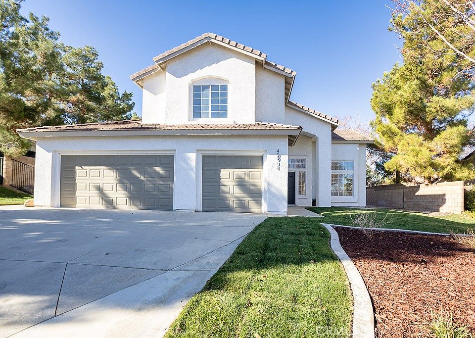 **Fantastic Price Reduction** Welcome to this inviting five bedroom, three bathroom Pool home, where comfort and convenience blend seamlessly. Located in the highly sought after prestigious gated community known as Stonegate in wonderful West Palmdale! Interior Features include spacious open concept living areas ideal for both everyday living and entertaining guests. An Inviting kitchen which features contemporary appliances such as a new stove, new dishwasher, new microwave, ample cabinetry, and plenty of granite countertop space with a full backsplash for all your culinary needs. A cozy breakfast nook provides the perfect spot for morning coffee. New flooring throughout the formal dining area, formal living room, family room, kitchen, and downstairs bedroom. Desirable floorplan that features a downstairs bedroom and full bath. Upstairs features brand new carpet, a primary bedroom with a private en-suite bathroom and walk in closet. Fifth bedroom can be used as another primary suite or a large bonus room perfect for entertaining! Other upgrades include new baseboards throughout, new fixtures, brand new paint interior/exterior, new hardware, new ceilings fans, new toilets, plumbing fixtures in the bathrooms and a brand new water heater! For added convenience laundry room inside and an attached three car garage. Nicely landscaped with new sod in front and rear yard featuring a 13,182 sq. ft. lot with plenty of space. Entertainers back yard!! Enjoy some shade in the large covered patio overlooking the sparkling pool and spa! Enjoy some basketball with the sport court in the backyard as well. RV access is very possible along with an extended driveway! Located near all amenities, award winning schools, parks, Rancho Vista golf course, shopping mall, dining and entertainment! Don’t miss a chance to make this haven yours! Welcome Home.