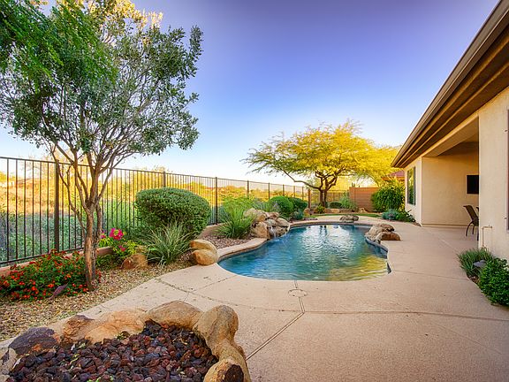 GOLF COURSE HOME IN ANTHEM COUNTRY CLUB! Stunning Mountain & Golf Course Views! Enter through the private gated courtyard into this open floorplan featuring formal living room, dining room, large kitchen open to the family room, 4 bedrooms, and 2 1/2 bathrooms. Large spacious kitchen includes a walk-in pantry, granite countertops, stainless steel appliances, gas cooktop, built-in wall oven and microwave. The backyard is an entertainer's dream featuring a private pool with views of the golf course, large covered patio, open flagstone patio, gas fire-pit and and synthetic grass. Enjoy all of the amenities of Anthem including the Anthem Country Club, Outlets of Anthem, and Parkside amenities. Close to all major shopping, dining, and entertainment. A MUST SEE!