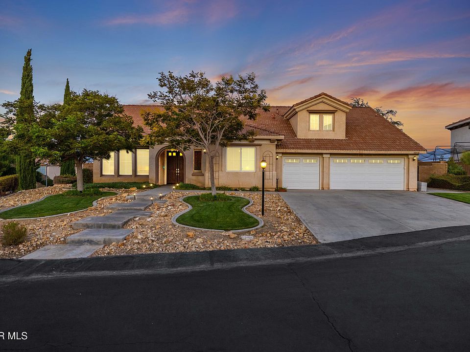 This gorgeous corner property, surrounded by tall trees, lush greenery, and beautiful views, is located in the prestigious Renaissance gated community of West Palmdale. Offering 3,607 sq. ft. of elegant living space on nearly half an acre with RV access, this 2004-built home features two primary suites—one on each floor—making it ideal for multi-generational living or guest accommodations.