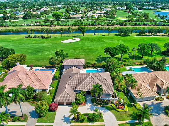 Amazing! Over 5000 square feet with 6 bedrooms overlooking the serene 2nd hole in the back and 1st hole in the front! Main floor has 4 bedrooms (one used as an office)six bathrooms and two family rooms. Another two bedrooms & bathroom on second floor. NEW Impact windows & 14 foot high ceilings. Split bedrooms. Additional room off of laundry for exercise. Primary boasts two bathrooms and large custom closets. Stunning library. Perfect home for entertaining & easy living. Gorgeous huge backyard -NEW patio, and driveway, covered & open patio & grassy yard! Bocaire CC mandatory membership - 239 homes boasts resort style amenities, championship golf course, tennis, fitness, high end dining, small friendly community, A rated schools, close to beach, restaurants, shopping, houses of worship.