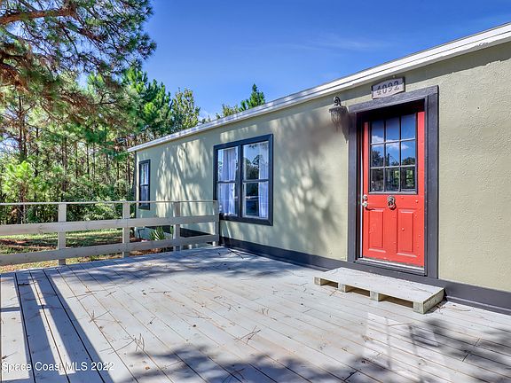 Wow! Move in ready 3 bed 2 bath double wide manufactured home featuring a split bedroom plan and 1188 sq. ft. of living space! Newly remodeled kitchen and main bathroom, new vinyl plank flooring throughout, new ROOF, new A/C, new deck, freshly painted and waiting for a new owner. Oversized lot with fenced in yard and large storage shed. Conveniently located close to shopping, schools, beaches. Short drive down to Indian River to watch all the rocket launches! Great starter home, investment or retirement home.