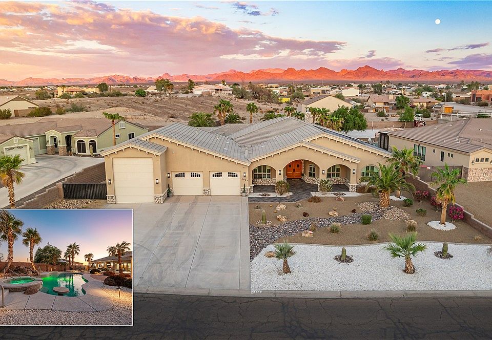This beautifully furnished custom built home offers 4 bedrooms, 3 bathrooms, and no HOA. The open floor plan features a gourmet kitchen perfect for entertaining, while the master suite boasts a spa-like en suite with dual vanities, a large shower, freestanding tub, and split walk-in closets. The split layout ensures privacy, with spacious extra bedrooms offering added versatility. Every bedroom includes a walk-in closet. Accent illuminated trayed ceilings throughout the great room enhance the open, airy feel. A dedicated office and a separate entertainment room with a wet bar provide functional spaces for work and relaxation. Car enthusiasts and adventurers will love the boat-deep, pull-thru RV garage with air conditioning. Outside, the backyard is an oasis, complete with a pool, jacuzzi, waterfall, and an outdoor barbeque with a bar. There's so much more to say about this property! This entertainer's dream home is designed for luxury living at every turn!