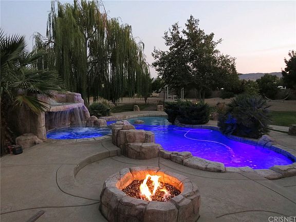 Back on the Market-Subject to Cancellation of Previous Escrow. This stunning west Palmdale home is like having your own resort, perfect for entertaining friends & family! The kitchen has been completely remodeled with granite courtertops, stainless steel applicances, custom cabinetry and a wine cooler. Family room has solid wood vaulted beams with a cozy brick wood burning fireplace. Spacious master suite has a renovated bathroom with stone shower, therapy tub and a huge walk-in closet. Three other bedrooms are nice size. All bathrooms are completely upgraded. Surrounded by mature trees and beautiful landscaping your yard will be like a dream! Picture spending your days in this quiet, private custom swimming pool & spa with a waterfall and fire pit! Large side yard for horses with small stable and its own front entrance, this parcel is all flat and usable. All 2.5 Acres are completely fenced!