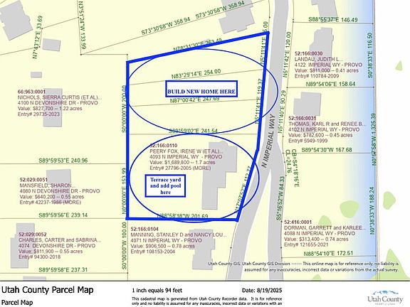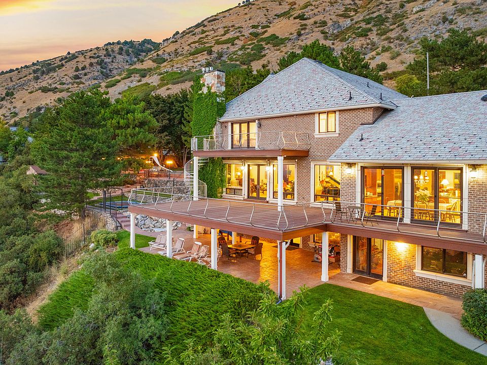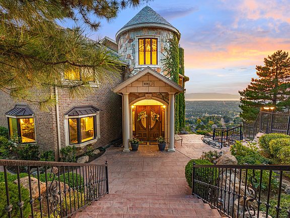 Come Live On Top of the World. This French chateau-inspired estate sits on 1.7 acres with unmatched mountain and valley views, offering timeless elegance and modern comfort. Originally built as a showcase home, it has since been THOROUGHLY REMODELED with more than $1M in structural and thoughtful cosmetic upgrades. IMPROVEMENTS INCLUDE a 50-year roof, all-new Sierra Pacific windows, and a fully redone stone-and-brick exterior. Expansive steel-framed decks totaling 1,400 sq. ft., new flooring, retaining walls, fencing, gate equipment, and a new mechanical system complete the transformation. OUTDOORS, enjoy lush landscaping, water features, fruit trees, and a private park with a basketball court, playground, and a NEWLY BUILT 18'x40' POOL with hot tub, diving board, and slide. Inside, a grand marble entry with custom wrought-iron railings, rose-stained and leaded glass, and a sweeping granite staircase sets an elegant tone. Coffered ceilings, heated marble floors, and exquisite millwork carry the home's architectural grace throughout. The GOURMET KITCHEN features cherry cabinetry, granite countertops, dual ovens, double dishwashers, and a glassed-in fireplace, opening to a spacious living area with panoramic valley views. The adjoining FORMAL DINING ROOM offers space for a banquet table beneath a custom chandelier. Additional highlights include a 30'x22' state-of-the-art theater, whole-home sound system, and full CAT-5e wiring. The MAIN-FLOOR OFFICE, currently a piano studio, features double doors and sound-reducing panes, with an adjacent half-bath that could easily convert to a full bath for a main-level bedroom with en suite bath. The PRIMARY SUITE lives like its own private retreat, with vaulted ceilings, double closets, a spa-like bath with heated marble floors, and a private deck overlooking Utah Lake. Multiple fireplaces, expansive decks, and a WALKOUT BASEMENT patio provide abundant indoor/outdoor living. The property ORIGINALLY CONSISTED OF TWO BUILDING LOTS, and the home was built on only one of them, so the north lot (which has its own utilities and meter in place) could be easily split off again and another home built on it. All of this is LOCATED just minutes from Little Rock Canyon, Provo Canyon, the Y trail, Riverwoods shopping, dining, and entertainment-combining complete privacy with unbeatable accessibility. Square footage figures are provided as a courtesy estimate only and were obtained from an appraisal sketch. Buyer is advised to obtain an independent measurement.