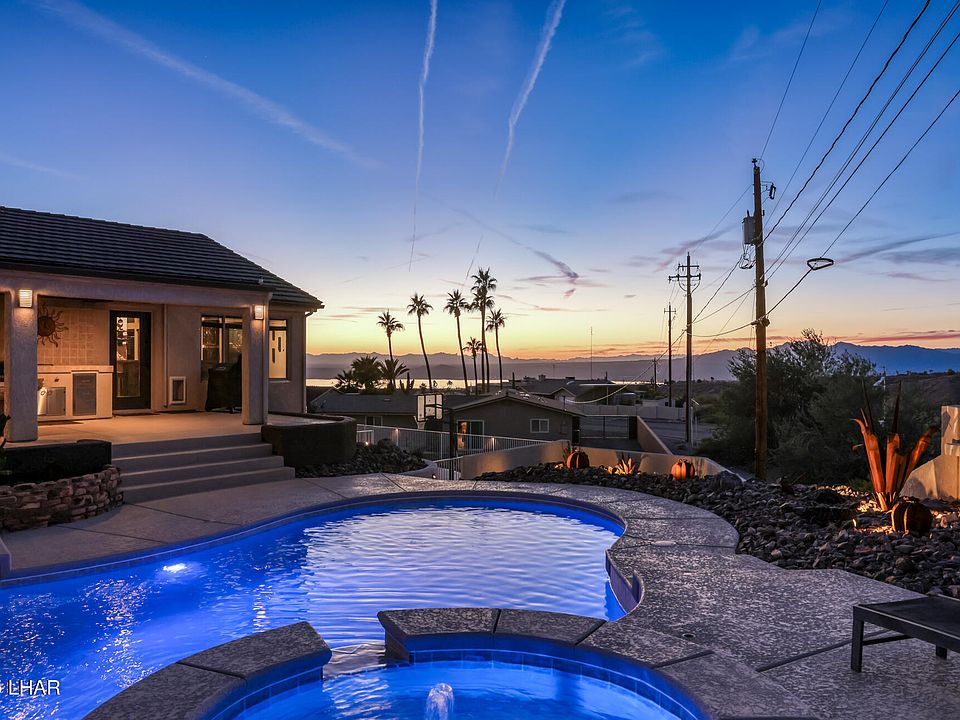 Enjoy breathtaking desert sunsets over Lake Havasu and peaceful mountain views from a backyard with no rear neighbors. Car enthusiasts will love the 30x40 shop, complete with abundant storage, built-in cabinets, and a full bathroom. Set on a spacious lot at the base of the Havasu Foothills, this property sits outside the HOA on a quiet cul-de-sac.