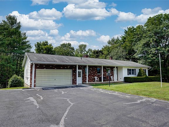 One owner, very well maintained 3 bedroom, 1.5 bath ranch home with 2 car garage situated on 2.3 acres that backs up to the Ontario County Pathways. Full basement with poured concrete walls. Plumbing installed to add a bathroom in the walkout basement. Property boasts a private back yard with plenty of room for gardening or recreation. New wall to wall carpet and electric heat, individually controlled for each room. Public water and up to date septic system. Vacant, easy to show and available for quick close. Estate sale. Delayed negotiations begin on August 16th at 1:00 pm.