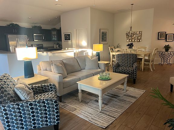 Our home has an airy and spacious living room, dining room, and gorgeous open kitchen. The master bedroom is spacious with tray ceilings and a large walk-in closet. The master bathroom has two vanities and a beautiful walk-in tiled shower with glass block. There are two dual sliding glass doors in the kitchen and living room, which lead out to the lanai. The kitchen features stainless steel appliances and beautiful cabinets. The laundry room is just off the kitchen and houses a stainless front loader washer and dryer with ample cabinetry. There is Italian porcelain tile flooring throughout the house. Blinds are on all windows.