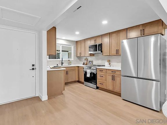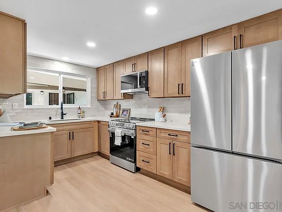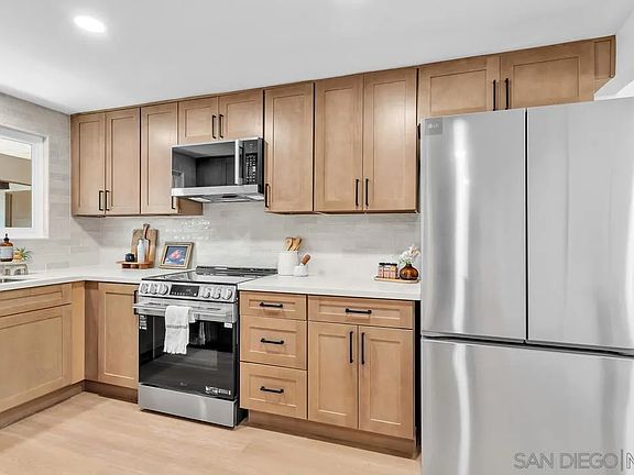 Beautifully Remodeled Condo on the Bonita Golf Course! Experience modern living in this stunning single-level 2-bedroom, 2-bath condo, completely remodeled from top to bottom and perfectly situated along the Bonita Golf Course. Enjoy peaceful greenbelt and golf course views from your private patio in this quiet, serene community. Step inside to find an open-concept layout with a brand-new kitchen that seamlessly flows into the dining area and living room. The kitchen features new custom cabinetry, quartz countertops, stylish backsplash, and all-new stainless-steel appliances. The home is light and bright with all-new windows, recessed lighting, and luxury vinyl plank flooring throughout. Both bathrooms have been beautifully upgraded with new vanities, modern fixtures, and custom-tiled showers. Additional highlights include fresh interior paint, carport parking with storage lockers, and access to two community pools and a recreation room. HOA fees cover water and trash. Conveniently located within walking distance to coffee shops, local eateries, and shopping. VA Approved! Don’t miss this turnkey gem in the heart of Bonita.