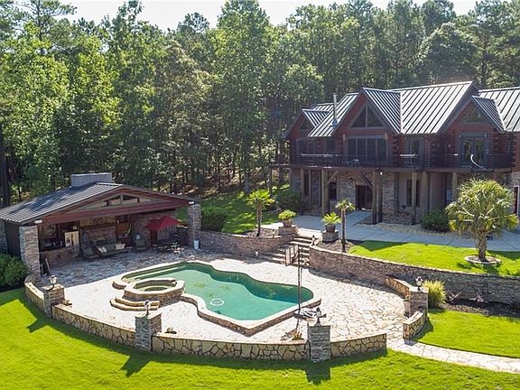 PURE ESCAPE! This true log cabin is set in an amazing landscape including a private lake w/ dock & water slide! Situated on 15 acres, this home has three levels of living including an amazing terrace level. Gourmet kitchen w/sub zero refrigerator & freezer as well as Wolf stove! Outdoor entertaining is well catered for with the chic hot tub that spills over into the alluringly cool swimming pool. A full kitchen and bar are included at the pool area so entertaining is an ease. This unique property could be the fulfillment of a dream! Property includes entire lake!!
