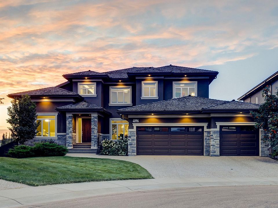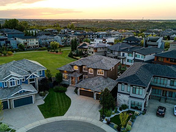 Stunning walkout estate on a quiet Westpointe cul-de-sac, directly across from the ravine and on a 1/3-acre lot. This thoughtfully designed home offers main-floor living, featuring a primary suite with a spa-like en-suite and a cozy fireplace. The chef's kitchen is equipped with premium Dacor appliances, a 13-foot island, and a full butler's pantry. Host effortlessly in the dining room with a tray ceiling or the living room with coffered details. The upper level features a family lounge overlooking the foyer and 3 spacious bedrooms all with private en-suites. The incredible walkout lower level is designed for entertaining, featuring a sleek wet bar, a glass wine room, a theatre, a home gym, bedroom and a covered patio. Practical luxury includes motorized Hunter Douglas blinds, whole-home sound, a triple-heated garage, an aggregate concrete driveway, and Built Green efficiency. Your exclusive lifestyle awaits with direct access to river valley trails, sought-after schools and amenities a short walk away.