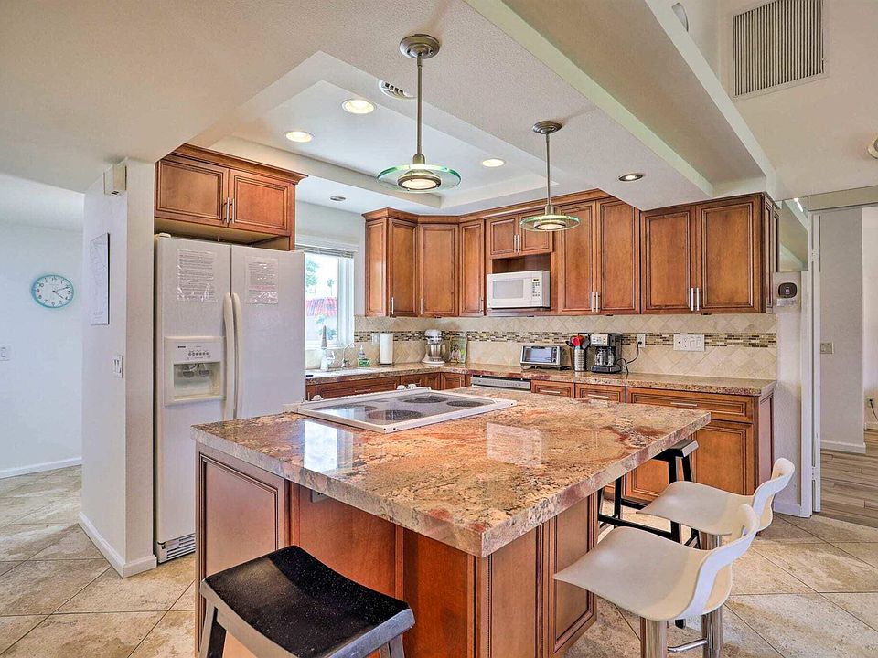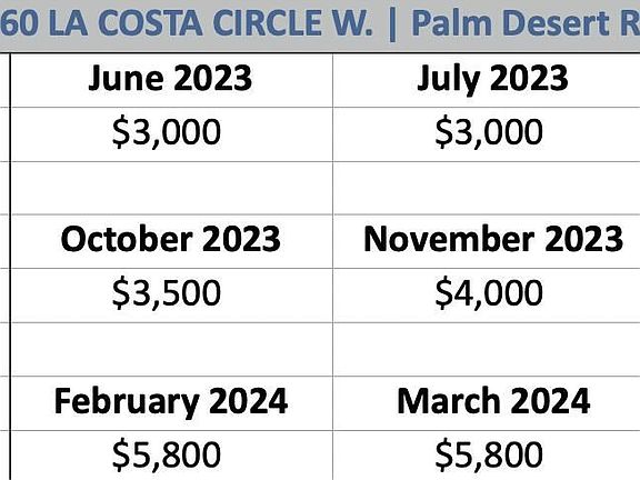Stay cool at The Resorter! Turnkey seasonal vacation rental, furnished WITH SOLAR and golf/tennis, pickle ball, clubhouse benefits. Available NOW. **See last photo for pricing & availability** Fully renovated 3-bedroom, 2-full bath. King in Master, Queen in Guest, Queen memory foam sleeper sofa in 3BD/ home office. NO carpet. Owner pays for deluxe cable package & wifi! Enjoy the security and luxury of Palm Desert Resort Country Club. One of the largest condos in the entire community, this home has been updated top to bottom, open floor plan kitchen with large kitchen island, granite slab countertops and new paint throughout. Attached 2-car garage with epoxy flooring and TONS of built in storage. Two large bathrooms with walk-in showers plus a separate jacuzzi tub. Extended patio with 180 degree mountain views and steps from the pool! As a tenant, you can enjoy the 18-hole golf course, 14 lighted tennis courts, 20 community pools. Come enjoy the sunshine in Palm Desert. Turnkey furnished, all appliances and furniture included (W/D, fridge). No pets or smoking.