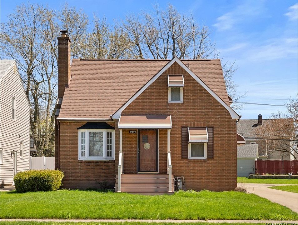 Inside, the main level offers single level living with two bedrooms both with hardwood floors and a full bath. You’ll also find a cozy living room with a wood-burning fireplace and a formal dining room with built-in cabinets. The bright kitchen features wooden cabinets, plenty of natural light and comes fully equipped with all appliances included. As you head upstairs you’ll find two additional bedrooms also with hardwood floors and a half bath. In the basement there is a partially finished area featuring another wood burning fireplace and bar area. The rest of the basement includes laundry room, storage area, gas stove and an additional full bathroom. Washer and Dryer are also included. With this spacious layout, well cared for solid brick house all sitting on a rare double lot, this home is move in ready and waiting for you. Amherst Schools!