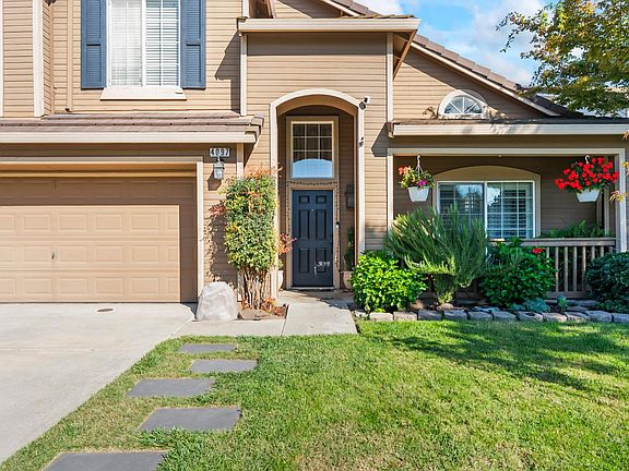 The gorgeous home that keeps on giving. From the 5 bedrooms and 2.5 bathrooms to the impeccably designed yards. This home is perfect for a large family allowing for room to separate or come together with a family kitchen combo and formal living room. For the chefs/cooks in the family enjoy the spacious kitchen with gas stove and the many cabinets for storing large cooking appliances. The unique hammered copper farm sink with granite counters adds the beauty of this home. The primary bedroom is your retreat with an oversized bathroom and roomy walk-in shower! For those who have different temperature needs there is a central multizone HVAC system, a whole house fan, plus fans in most rooms. In addition to help save money the home runs on seller owned solar! Did i mention the beautiful in ground pool as a way to cool off on those hot summer days! Good fun in a large backyard with a gazebo or venture into the garage all set up for gameday! On left side of garage there is room for another vechicle as well as 3 sheds for storage! If you want more interaction with the neighbors there is also a community pool that your association dues pays for. They are approx $285 per qtr.