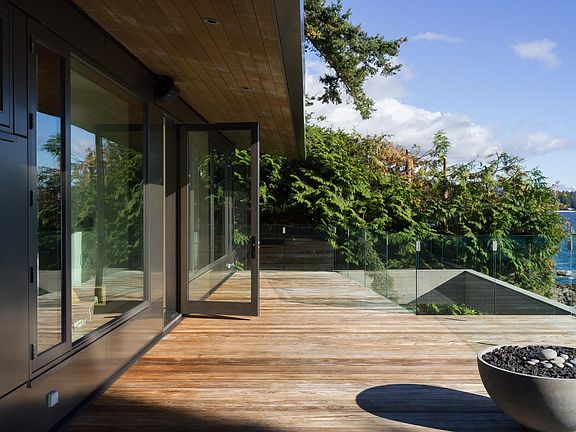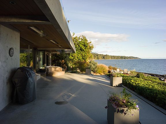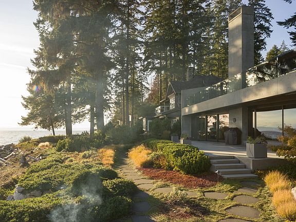 Introducing Pebble Beach House, a breathtaking contemporary waterfront residence designed by D'Arcy Jones Architecture. This stunning home masterfully combines glass, steel & concrete, showcasing meticulous attention to detail in both layout & material. The open-concept design creates a seamless flow that highlights the natural beauty of its oceanfront & forest surroundings. The private beachfront invites you to embrace a serene coastal lifestyle. Situated on a sprawling 1-acre lot, this estate includes a charming guest cottage w/ ocean views, providing privacy & comfort for its occupants, a two-car heated garage and outdoor living spaces that feature extensive terraces, patios, and beautifully landscaped gardens, all supported by energy-efficient systems and eco-friendly materials.