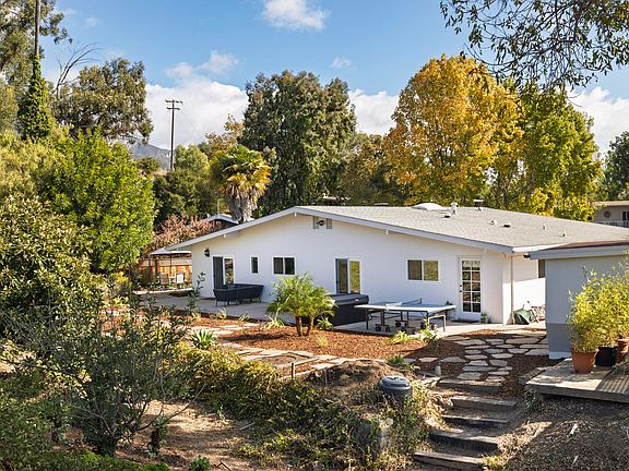 Step inside to find freshly painted interiors and hardwood floors that flow seamlessly through the bright, open spaces. This home boasts updated plumbing and electrical systems, air conditioning, skylights, and solar tubes. The heart of the home features vaulted ceilings, a cozy gas fireplace and sliding glass doors, making it the perfect place to gather with loved ones and enjoy the variety of outdoor areas The spacious kitchen is a cook's dream, with an abundance of natural light, top of the line stainless steel appliances, and granite countertops. This home also includes a detached accessory structure, ideal for a home office or creative space. With multiple sliding doors leading to the expansive yard, the home boasts exceptional indoor/outdoor flow. Whether you're hosting a summer barbecue, relaxing in the hot tub under the stars, gardening in the many raised planter beds or simply enjoying a quiet moment among the fruit trees, the spacious and natural landscape offers something for everyone.