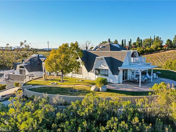 Stunning Architectural Gem Located in the heart of Temecula Wine Country. This Unique Style Property Offers High Ceilings and Multidimensional Walls, Angles and Skylights. Walk to the Award Winning Wineries, Enjoy Beautiful Wine Country Views, Sunrises and Catch a Glimpse of Hot Air Balloons Flying Above. Main Residence Includes Three Bedrooms and Three Bathrooms. Separate Entrance Guest Quarters Include Another Bedroom/Loft, Living Area, Full Bathroom, Small Kitchen and Balcony. Office Area Includes Several Small Offices, Workshops, "Harry Potter Room" for Storage, Large Bedroom and Bathroom. Three Car Garage is Oversized with High Ceilings and Tall Garage Doors. Multiple Storage Sheds on the Property. Current County Land Use is Wine Grape Vineyard. Seller would consider a lease back @ $15,000 per month for one, two or three years.