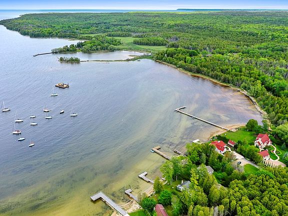 Unbeatable location in the heart of Fish Creek you will find nestled on the shores of Green Bay, your perfect Door County retreat. This location is like no other, offering the serene waterfront atmosphere of nature but all within walking distance of all the great shops, restaurants, marina, and Peninsula State Park in downtown Fish Creek. Perfect for an avid boater, explore all of Door County waterfront with your boat on your own pier. Oversized lot with what could be considered the best view in Door County. Gaze for hours at the sailboats moored, the islands and yachts cruising the shores of the bay. You can see for miles from your own private beach or pier and get lost in the stars. Location is everything and this does not disappoint.