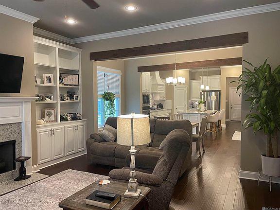 Open House February 2, 2025 between 2 pm - 4 pm. Don't Miss Out! Welcome Home!! You can't miss an opportunity to call this adorable one-story home with 3 bedrooms and 2 bathrooms in Americana Subdivision yours. When you step onto the relaxing front porch it sets the stage for when you enter this precious house. You will notice the open and flowing living, dining and kitchen areas. Each area is separated by exposed Cypress wood beams that have neutral wall colors that will work with any decor. The living room is a good size with gas log fireplace for those cool Louisiana nights, or ambiance for guest. With the well designed kitchen that any chef will love, it features custom-painted cabinets, an expansive center island with granite counters, a composite sink, and hanging pendant lights. The white tile backsplash, stainless steel appliances with a gas cooktop, built-in wall oven and microwave, and a walk-in corner pantry complete this gourmet kitchen. Step off the kitchen you love entertaining or just hanging around the enclosed patio. Between the garage entrance and the laundry room is a mud bench offering storage and hanging space. The thoughtfully designed split floor plan places the spacious main bedroom at the rear of the home, offering privacy. Indulge in the spa-like en suite bathroom, showcasing a custom-tiled walk-in shower, a separate soaking tub, dual vanities, and a large walk-in closet. The other 2 bedrooms are located at the front of the home. The screened-in side porch offers the perfect spot to sit and unwind. Americana is one of Zachary’s newest communities with a state of the art YMCA, dog park, lake, playground, restaurants and more! Come see what life in Americana is all about! Call to schedule your showing today!