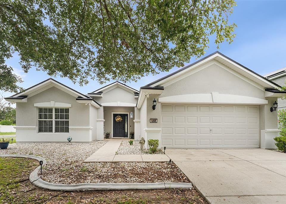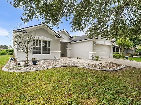 Welcome home to this immaculately kept 3-bedroom, 2-bath stucco home located in the desirable Cimarron subdivision within the well-established community of Fore Ranch. Offering the perfect blend of comfort, style, and efficiency, this turn-key property has been thoughtfully updated for worry-free living with newer roof (2022), HVAC system (2018), smart water heater (2018), a fully owned solar panel system (2018), water softener system, and automatic irrigation system. Inside, you'll find a spacious open floorplan with soaring ceilings, updated fixtures throughout, updated luxury vinyl plank flooring, and custom built-ins topped with quartz countertops that bring both style and function to the living space. The kitchen offers ample storage, Corian countertops, and beautiful cabinetry. The split-bedroom layout provides ideal privacy, and the primary suite features a generously sized en-suite bathroom with a walk-in shower, double vanity, separate water closet, linen closet, and a thoughtfully designed walk-in closet. Enjoy seamless indoor-outdoor living with a screened-in lanai overlooking your corner lot—perfect for entertaining or relaxing all year round. Set in a quiet, well-maintained neighborhood with mature landscaping and sidewalks throughout, Fore Ranch offers an unmatched list of amenities, including a clubhouse, resort-style heated pool, splash park, game room, business center, fitness center, playground, basketball, tennis, and volleyball courts, soccer and football fields, and scenic walking trails. All of this is conveniently located near hospitals, shopping, dining, and top-rated schools. Don’t miss your chance to own this beautifully maintained, energy-efficient home!