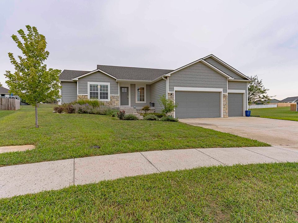 This 5-year-old home offers the perfect blend of style, space, and convenience. Tucked on a quiet cul-de-sac, it features 5 bedrooms, 3 bathrooms, a 3-car garage, and a spacious backyard—ideal for everyday living and entertaining. Step inside to an inviting main floor where the master suite boasts a walk-in closet, spa-like bath, and the rare luxury of direct access to the laundry room. The kitchen impresses with floor-to-ceiling cabinetry, pantry storage, and modern finishes, while two additional bedrooms and a full bath complete the main level. The fully finished basement is a dream hangout spot, offering a large family room with wet bar, two more bedrooms, and a full bath. Thoughtful updates include a tankless water heater and other modern touches throughout. Move-in ready and beautifully maintained, this home looks and feels brand new—just waiting for you! Call Anushka Karote for a tour at 785-340-2275, Courtesy of KWOLP LLC.
