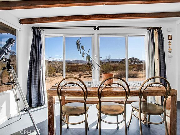 Set on nearly two flat acres at the base of Bunker Mountain, this 1959 Jack Rabbit Homesteader blends mid-century charm with thoughtful modern upgrades. Located just 10 minutes from the entrance to Joshua Tree National Park and close to local dining, shops, and art spaces, it’s perfectly positioned to enjoy the best of the high desert.