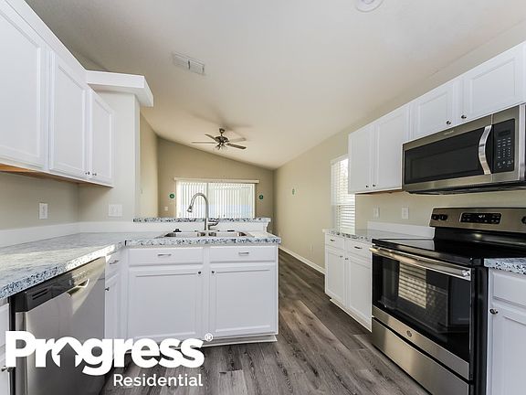 Submit an application by February 15, 2020 and receive $500 off your security deposit. Have a busy schedule? Click the "Show Yourself In" button on this home's RentProgress. Featuring four bedrooms, two bathrooms, a spacious backyard, and more than 1,600 square feet of space, this Kissimmee rental home has plenty to offer. This single-story house has a modern, open floor plan. The spacious living room boasts vinyl plank floors, neutral walls for easy decorating, and an extra-high ceiling. In the adjacent kitchen, home cooks will love the granite countertops and upgraded appliances. There's a breakfast bar that connects with the dining area, too. The master suite has a walk-in closet as well as a luxurious bathroom with a garden tub and dual-sink vanity. The fenced-in backyard and patio are great for entertaining. Get in touch today to see this rental home. Note: The listed amenities may not be accurate. Please consult with a Progress Residential leasing agent to confirm the property will meet your individual needs.