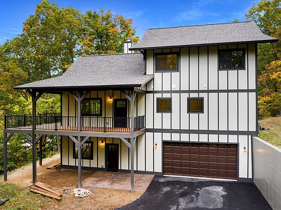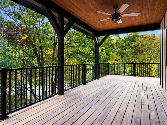 Perched high among the treetops, this contemporary new construction—lovingly nicknamed “The Treehouse”—offers a one-of-a-kind Northern Michigan living experience. Every window frames a four-season view of the rolling hardwoods, creating a sense of serenity and privacy that feels worlds away—yet you’re just minutes from Sugar Loaf Mountain and Golf Course, and a short drive to the charming villages of Leland, Glen Arbor, and the sparkling shores of Lake Michigan. Inside, clean lines and thoughtful finishes define the space. A stunning stone fireplace anchors the great room, while the open-concept kitchen features granite countertops and custom cabinetry perfect for entertaining. The primary suite is a true retreat with a spacious walk-in closet and spa-like bath complete with a clawfoot tub. Rounded bull-nose drywall edges, warm wood tones, and abundant natural light elevate the home’s contemporary mountain aesthetic. Step outside and you’ll find the showstopper—an expansive 800+ square foot wraparound deck that extends your living space into the trees. It’s the perfect spot for morning coffee, peaceful evenings, or dining surrounded by nature—this is Northern Michigan living at its finest. Whether you’re seeking a full-time home or a seasonal retreat, The Treehouse offers the perfect blend of modern comfort, nature, and proximity to everything the Leelanau County has to offer.