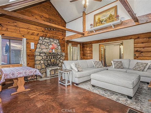 CALLING ALL CABIN LOVERS!!. Located in the lovely low mountain area of Forest Falls. This beautiful home built in 1946 has been freshly and newly painted both on the outside and on the outside deck overlooking a nice big backyard fence, located at the top of the stairs right outside the door of the two story level. This is where you can enjoy the lovely views of the mountains, beautiful skies, the sun, rain, or snow, and the cute bears that love to roam up and down the mountain roads. This home is perfect for raising kids, a family, and even your fur babies. It is very cozy and has an additional loft upstairs that can be turned into a bedroom or even a little mountain playroom. The walls have a tongue in groove with knotted pine that you can enjoy watching movies in, or just a simple campfire by the fireplace. This home has a nice rustic cabin feature with lots of open space that will hold lots of love, joy, happiness, comfort, and forever memories. Don't miss out on this one of a kind beauty!!