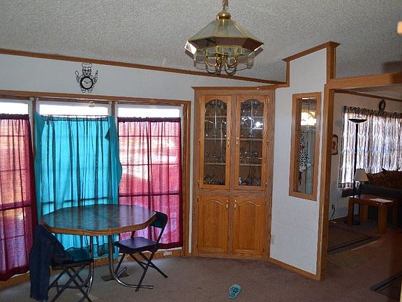 Spacious manufactured on verdant 1.5 acre parcel. There are water rights. There are corrals on each end of the property with a connecting fenced walkway. Expansive views. Large Shed. There are two living areas and two dining areas. Affordable.