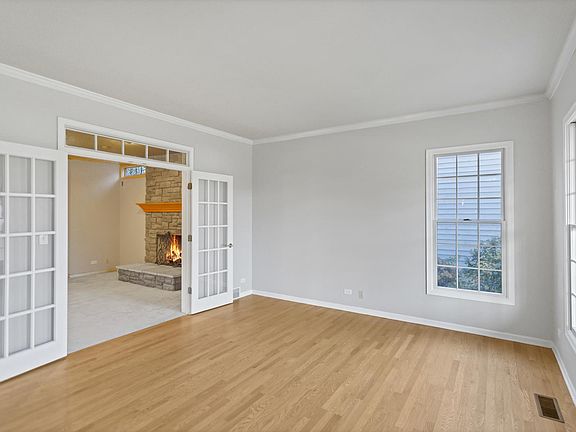 Beautifully updated 4 bedroom home in Fox Mill in St Charles. Enjoy your morning coffee on the inviting front porch. The main level includes gleaming hardwood floors, 9 foot ceilings, and transom windows. Formal dining room with marble floor inlay and tray ceiling. The living room, with transom and french doors, leads to the family room. Add even more living/entertaining space with the spacious family room featuring a stone fireplace and recessed lighting. The chef's kitchen boasts stainless steel appliances, 42 inch maple cabinetry with crown molding, backsplash, island/breakfast bar, pantry cabinet, and an eat-in area with slider to the deck. Private main level office would be great for working from home. There is also a full bath on the main level~ could be a possible in-law arrangement. Convenient first floor laundry with sink and cabinets for storage. Upstairs showcases a master bedroom with huge walk-in closet with built-ins and an en-suite bath with double sinks, separate shower, and a whirlpool tub. There are three additional bedrooms and another full bath with double sinks on the second level. The partially finished basement includes a finished flex space, full bath, and plenty of room for storage. Entertain on the deck or brick paver patio with firepit. Three car garage. Great location near shopping, restaurants, and Randall Rd. Nothing to do but move in!