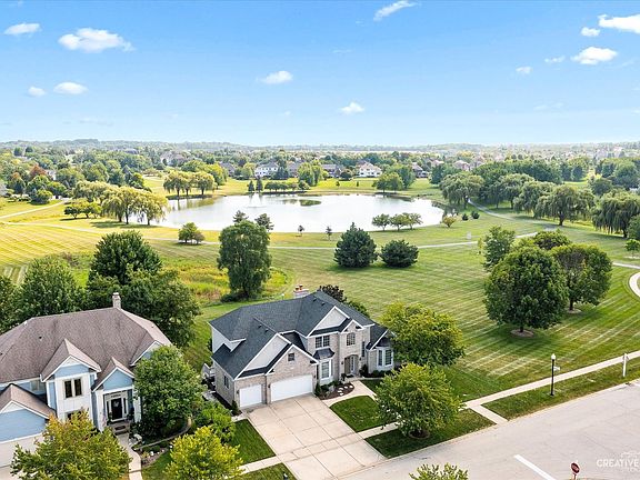 One of the best locations in Fox Mill neighborhood backing to acres of open green park space and serene water view of the peaceful pond, fountain and paved walking paths. Enjoy catch n' release fishing, biking or running/walking on the path just outside your door - Priceless! The open fields continue to the west side of the property - there is not a house next door! Across the street is even more open land with walking path and gazebo. Enjoy all the views and park space right in your backyard without the maintenance! Step inside this gorgeous pristine home and appreciate the open floor plan with a two-story foyer and "great room" with soaring brick fireplace. Hardwood floor on the entire main level. The family room features double stacked windows showcasing the view and floods the main level with natural light. The kitchen sparkles with white cabinets, granite countertops, pantry, island and stainless steel appliances. You won't ever have to move because there is a first-floor primary suite with volume vaulted ceiling, his & her walk-in closets and luxury bathroom. Moving upstairs there are three additional bedrooms with walk-in closets and a large office with a walk-in closet. This room could also be a 5th bedroom, playroom, teen lounge or exercise room. The finished look-out basement does not feel like a basement with so much natural light and extra high ceilings. The massive basement gives an additional level of living including a bar with fridge, two recreational areas, second brick fireplace and a full bath. So Many Updates to Mention: Roof 2018; Furnace 2020; Exterior Paint 2020; Interior Doors 2019; Hardwood Floors Refinished 2024; Some Light Fixtures 2024; Sump Pump 2020; Garage Door Opener 2017/23; Ejector Pump 2022; Hot Water Heater 2014; Garbage Disposal 2023; Basement Shower Tiled 2024. The highly desirable Fox Mill neighborhood has #1 ranked Bell Graham Elementary School located within the subdivision, just 4 blocks from this home. Other offerings of this coveted neighborhood is over 5 miles of paved walking/running/bike trails, numerous ponds, private clubhouse and pool for homeowners and their guests, organized neighborhood social events and over 200 acres of open grass park space in the subdivision. Just minutes to the Metra commuter train station, Delnor Hospital and downtown St Charles and Geneva for bars, restaurants and shopping!