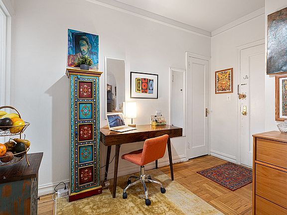 This charming Pre-war Co-op Studio yields a spacious layout for living, dining and sleeping with original parquet hardwood floors. The entrance foyer provides work-from-home option or dining space. A spacious Main Room features a living room and sleeping area which can accommodate a full size bed, after light filters thru the window to brighten the Main Room. The update windowed kitchen offers ample storage with standard oven & refrigerator and tiled floors. The tiled bathroom is windowed and features a large tub and pedestal sink. Board Approval is required.