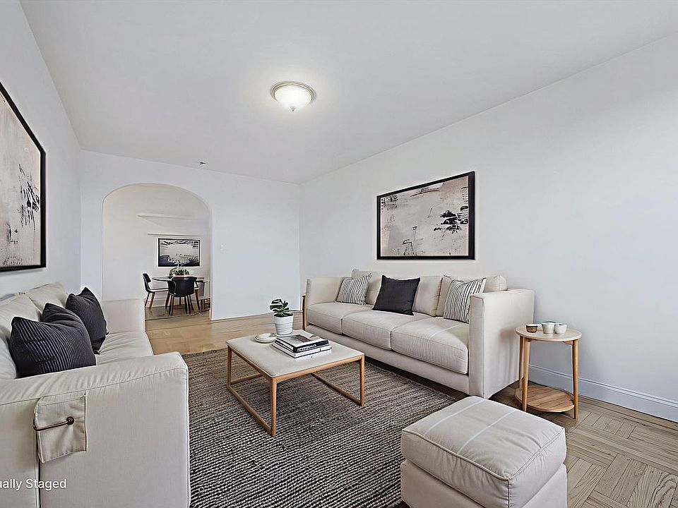 As you enter this extra large apartment, there are two deep closets that lead to a large foyer. The windowed foyer(Manhattan View) is ample enough to be transformed into a dining area. Two floor to ceiling units are tastefully located in the foyer area. The sun-lit(southern exposure) living room with two windows provides wonderful space to relax and entertain. The attractive eat-in windowed kitchen features stainless steel appliances including a dishwasher and microwave as well as stone countertops and slate floors. Bright corner bedroom with three windows fits a California king bed. White subway tiled walls and marble floors compliment this windowed bathroom with a pedestal sink. Beautiful hardwood floors, high ceilings and curved archways are throughout this amazing apartment with great storage.