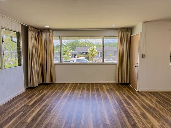 Welcome home to this beautifully renovated 3-bedroom, 1.5-bath single-family home in the heart of Waimanalo. The home has been thoughtfully updated with brand new kitchen and bathroom cabinets, sleek new countertops, modern vinyl plank flooring throughout, and split A/C units in both the living room and bedrooms to ensure comfort year-round. In addition to the main bath and half bath, there is a convenient bonus shower located off the laundry area, perfect for rinsing off after a beach day. The spacious layout offers three comfortable bedrooms, a bright and open living area, and a dedicated workshop/storage space. Set on a level 6,273 sq ft lot, the property features a large yard with stunning views of the Koolau mountain range. Parking is convenient with a covered carport and additional driveway space. Located on a residential street, you'll enjoy a peaceful setting just minutes from Waimanalo Beach, Kailua Town, Olomana Golf Course, and scenic hiking trails.